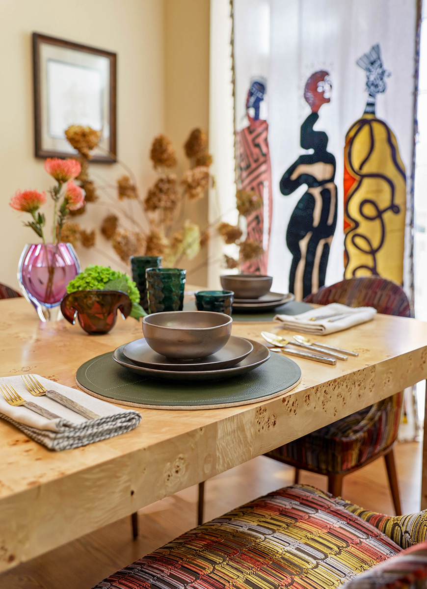Inspired by the client's art and collections, this home was created with layered global influences, where curated treasures, richly textured textiles, and collected color come together to tell a deeply personal story. A truly special, soul-driven space.